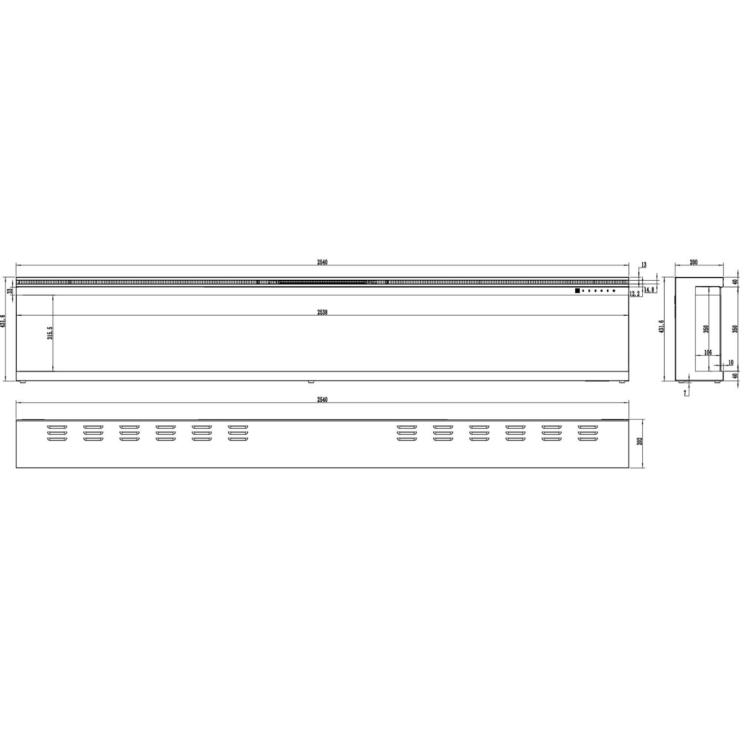 - Wbudowany elektryczny kominek Aflamo Unique (254 cm)