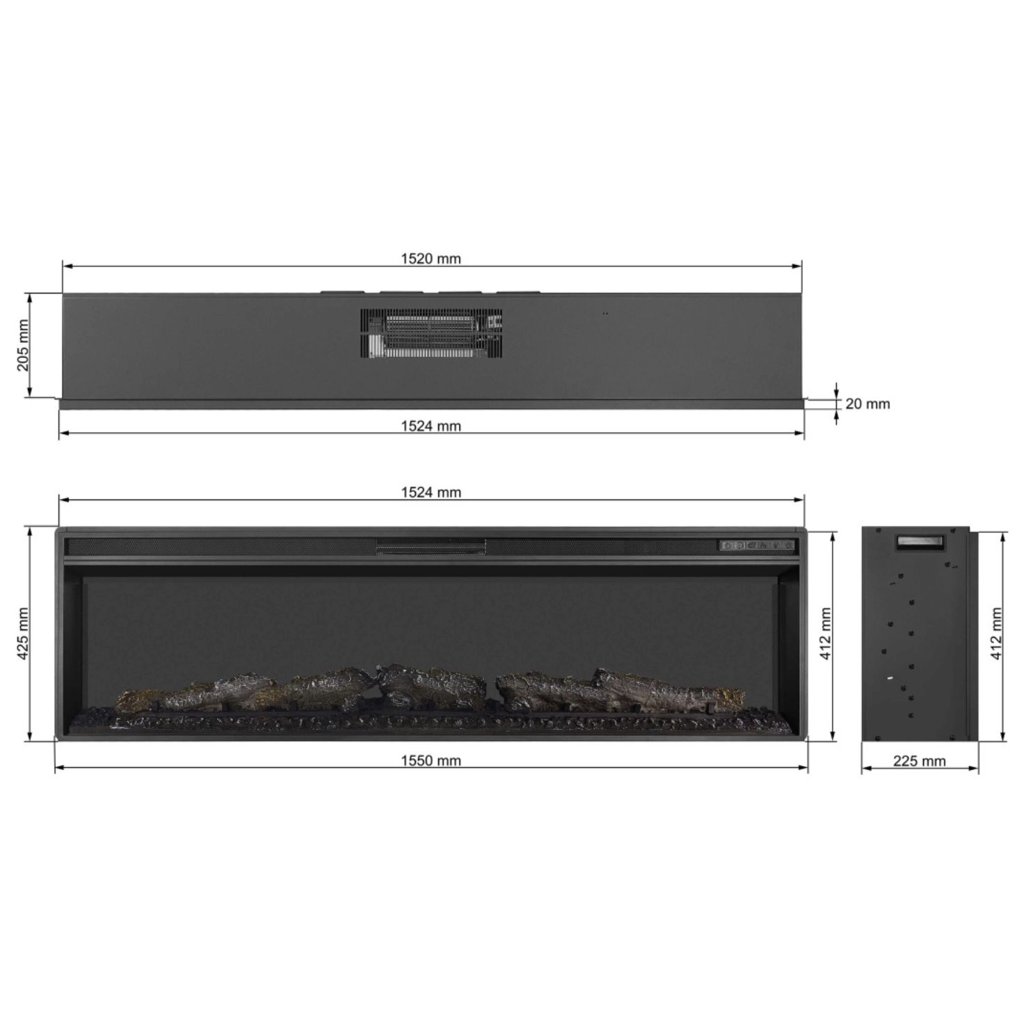 Product dimensions 155 cm wide, 42.5 cm high and 22.5 cm deep. Wykonany ze stainless steel in hartowanego glass, zapewnia durvalość in elegant appearance.