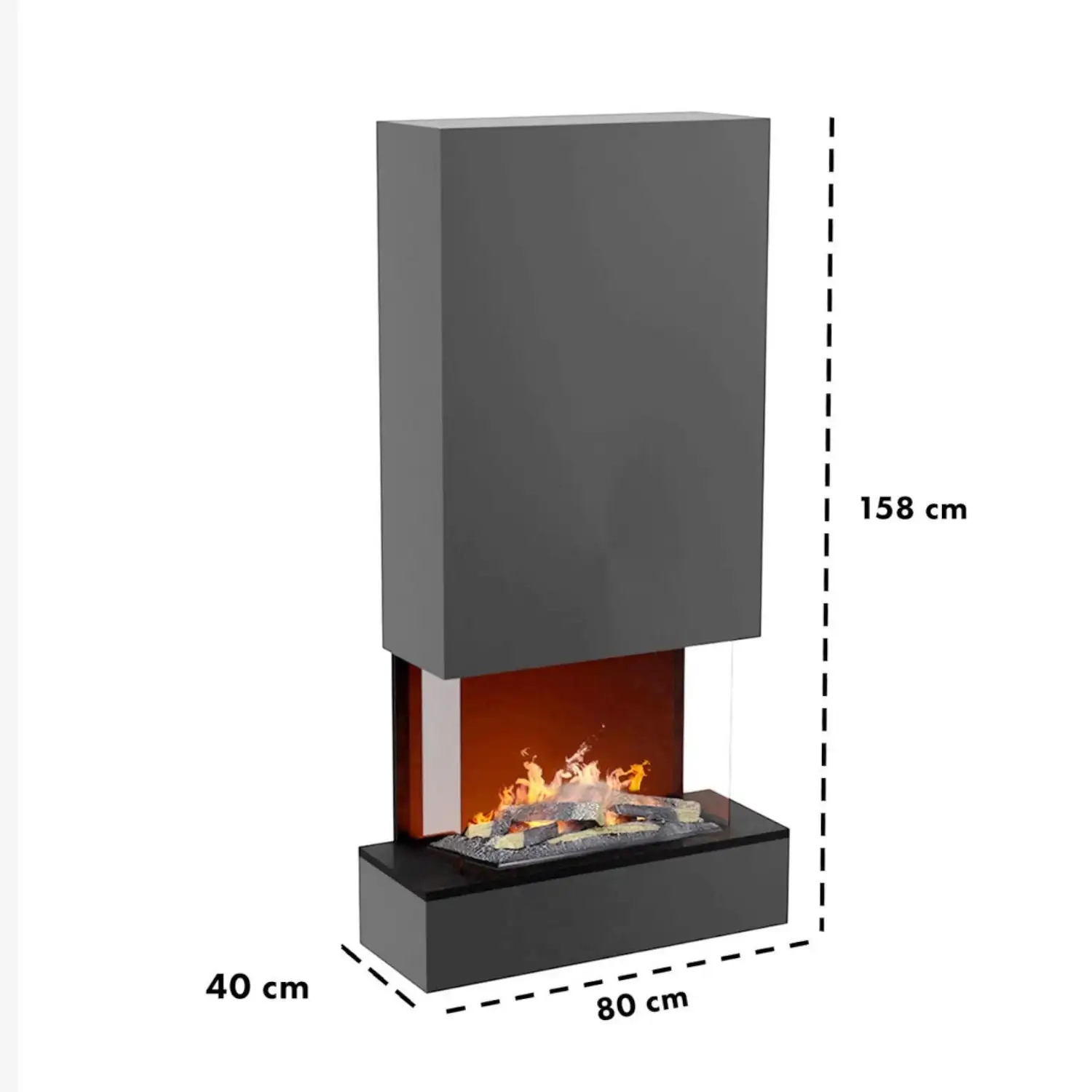 Sięgając wysokości 158 cm, Hölderlin Tall Grey oferuje bardziej dominującą prezencję, co czyni go idealnym centrum większych przestrzeni, czy to w domu, biurze, czy w przestrzeni komercyjnej. Pomimo swoich rozmiarów, kominek nadal zapewnia atmosferę tradycyjnego ogniska bez potrzeby wytwarzania ciepła, co czyni go idealnym do cieszenia się przez cały rok.