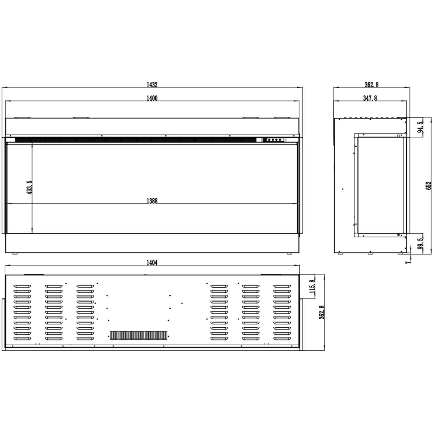 Elektryczny kominek Aflamo Superb 3D 140 cm (55\") charakteryzuje się oszałamiającą, trójstronną konstrukcją z 15 kolorami płomieni, 5 poziomami jasności i mocą grzewczą do 1,5 kW. Tworzy zarówno ciepło, jak i atmosferę, sterowany za pomocą pilota lub aplikacji. Rzeczywiste wymiary tego modelu to 143,2 cm (56,4\") szerokości, co czyni go idealnym rozwiązaniem dla większych pomieszczeń. Montaż na ścianie lub wpuszczany zapewnia elegancki, wszechstronny dodatek do Twojego domu.