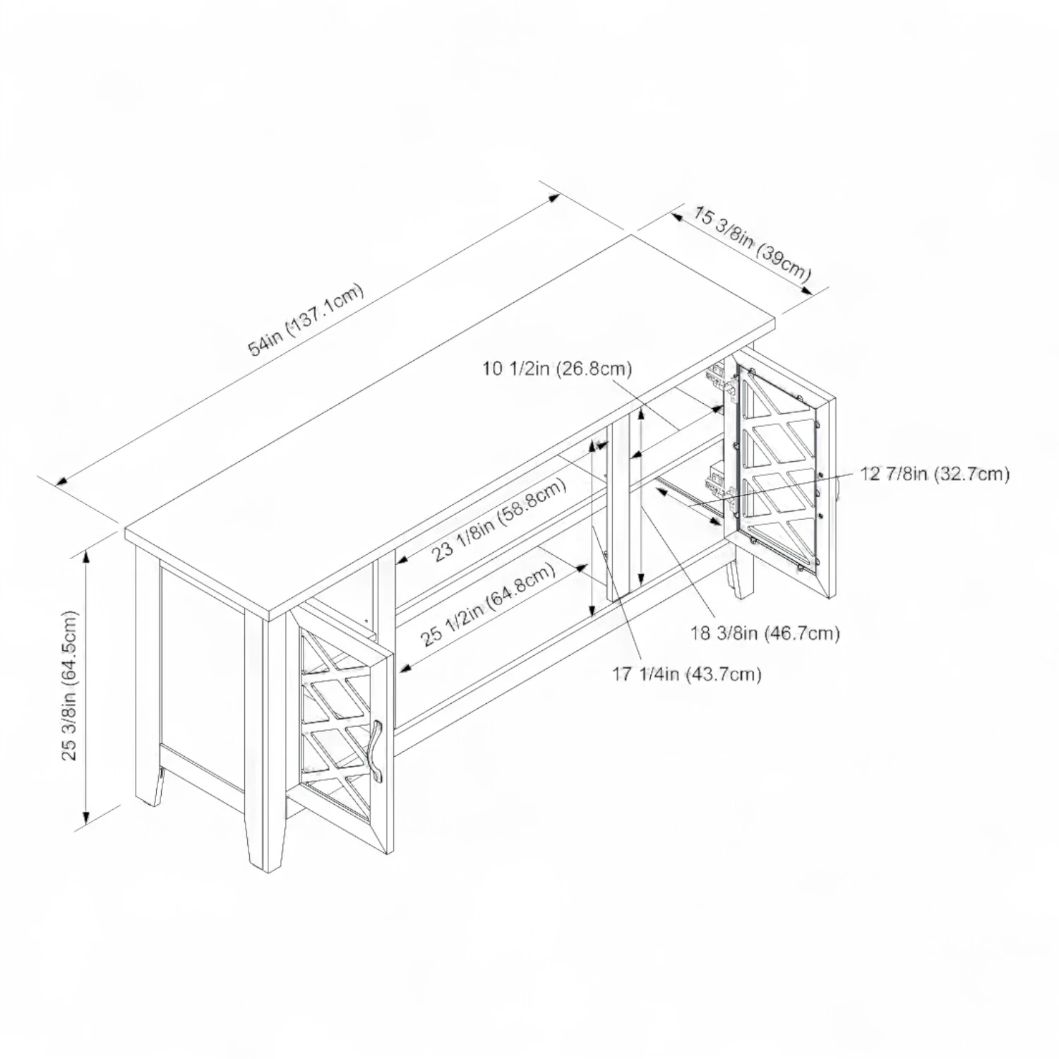 - Przybliżony całkowity rozmiar: 137,1 × 64,5 × 39 cm