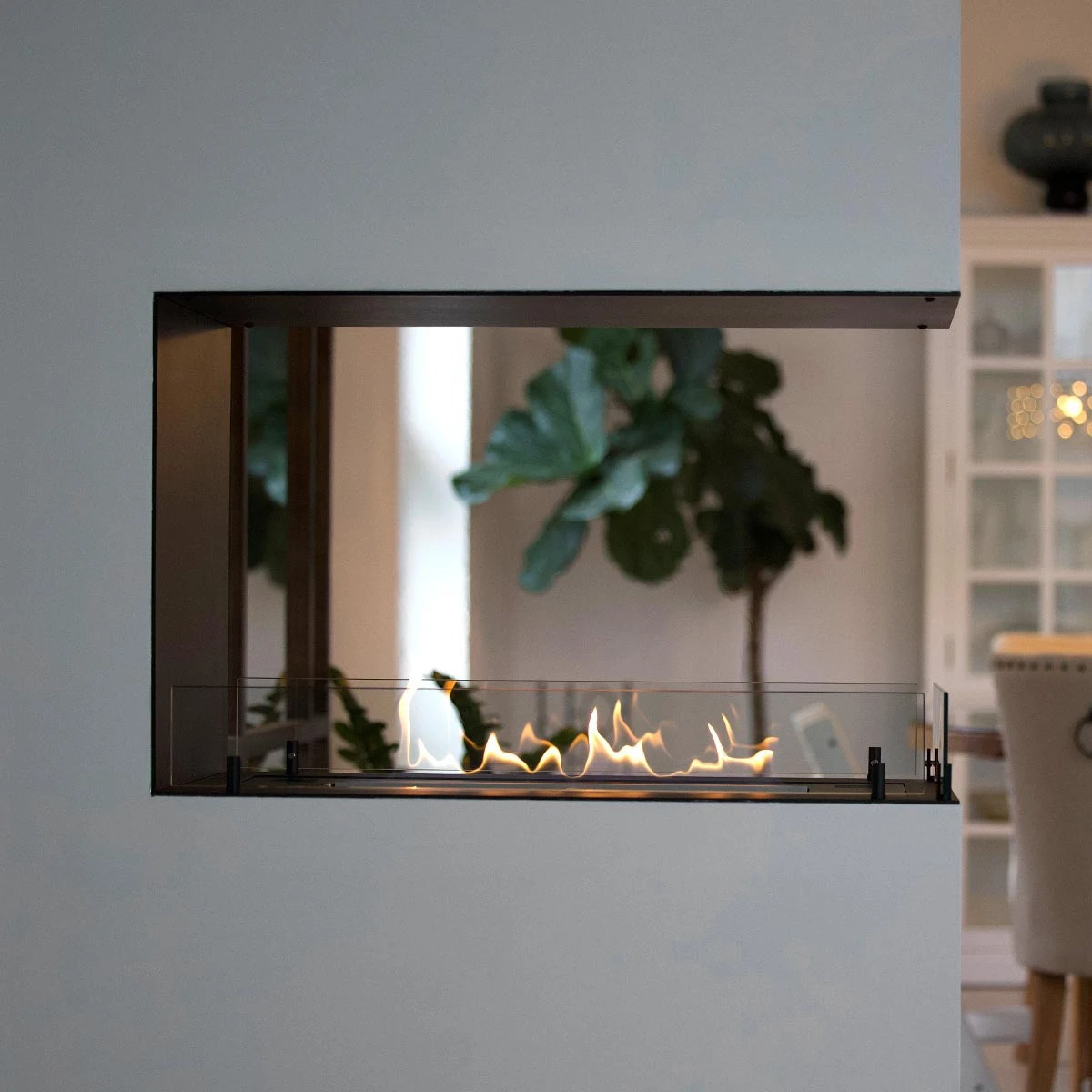 Po zakończeniu prac możesz włożyć palnik bioetanolowy do ramy kominka i zamontować szybę ochronną.