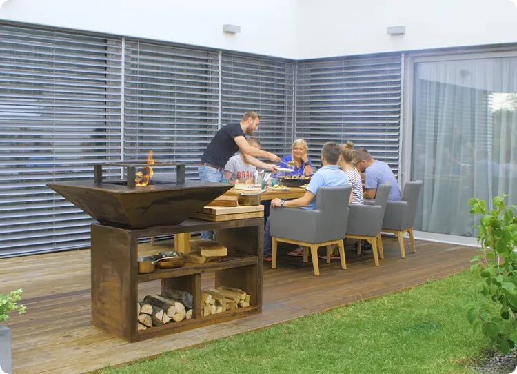 Stal COR-TEN była pierwotnie używana w budowie statków, ze względu na jej odporność na wilgoć i środowiska słonowodne. Dlatego nie musisz martwić się deszczem, śniegiem czy mrozem – Twój grill doskonale poradzi sobie z trudnymi warunkami pogodowymi, nie tracąc przy tym na designie, funkcjonalności ani jakości.