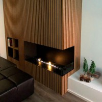 Jednostronny kominek z możliwością wbudowania w ścianę. Występuje w różnych rozmiarach, z modelami przeznaczonymi do wąskich ścian. Idealny, jeśli chcesz kominek z widokiem na płomień z przodu.